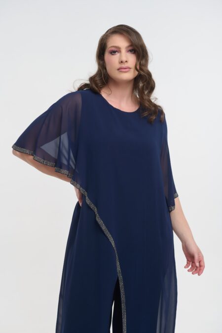 Η φούστα του είναι σε γραμμή Άλφα και κλείνει με φερμουάρ στην πλάτη.