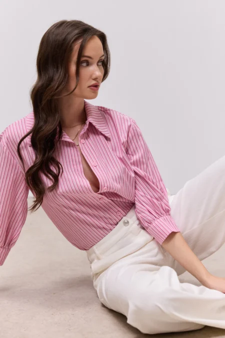 Το ριγέ μοτίβο σε μπλε και εκρού δημιουργεί ένα εφέ επιμήκυνσης της σιλουέτας, κάνοντάς την ιδανική επιλογή για κάθε σωματότυπο.