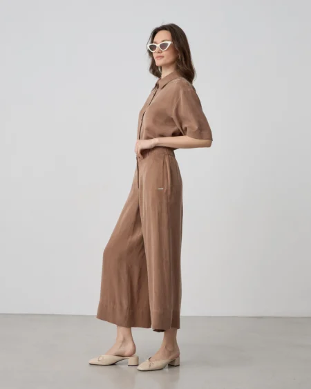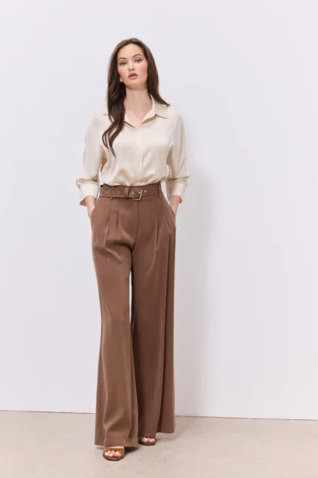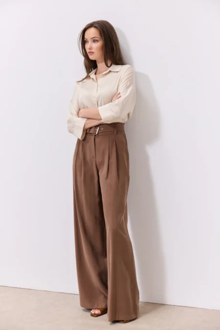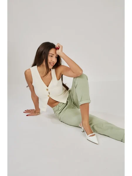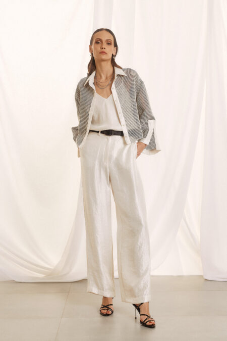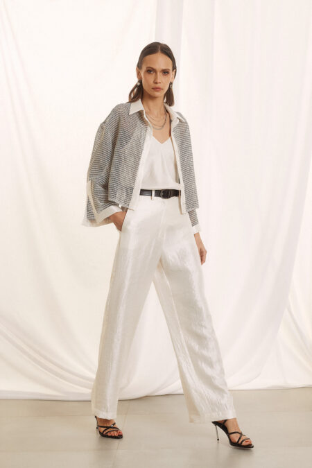 95,00€Αυτό το παντελόνι είναι σχεδιασμένο για να τραβάει τα βλέμματα με τον πιο εκλεπτυσμένο τρόπο. Το κύριο χαρακτηριστικό του είναι το “κρυσταλιζέ” ύφασμα με την πολυτελή, ιριδίζουσα όψη που αντανακλά το φως σε κάθε σας κίνηση. Γραμμή ψηλόμεση, σε άνετη wide-leg γραμμή (παντελόνα) που χαρίζει κίνηση και μακραίνει τη σιλουέτα. Ύφασμα ελαφρύ, με ανάγλυφη shimmer υφή και satin finish που δίνει μια αίσθηση “πολύτιμου” μετάλλου σε pearl white απόχρωση. Διαθέτει θηλιές για ζώνη, επιτρέποντάς σας να το προσαρμόσετε με μια δερμάτινη ζώνη για πιο edgy look ή να το αφήσετε minimal.