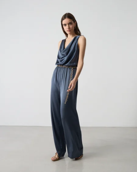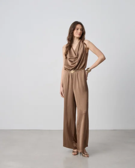 Διακριτικό άνοιγμα V στο μπροστινό μέρος που κλείνει με ένα κομψό κόσμημα.