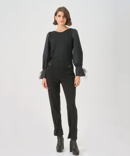 ΜΠΛΟΥΖΑ ΕΛΑΣΤΙΚΗ ΜΕ ΜΑΝΙΚΙΑ ΑΠΟ ΠΟΠΛΙΝΑ, ΜΑΝΣΕΤΑ ΜΕ ΔΙΑΚΟΣΜΗΤΙΚΟ ΦΤΕΡΟ.