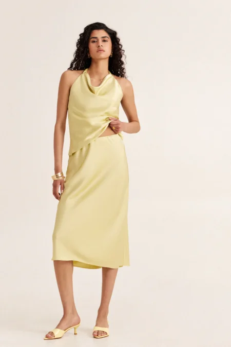 Φούστα με διακριτική μεταλλική γυαλάδα (shimmer) που αντανακλά το φως.