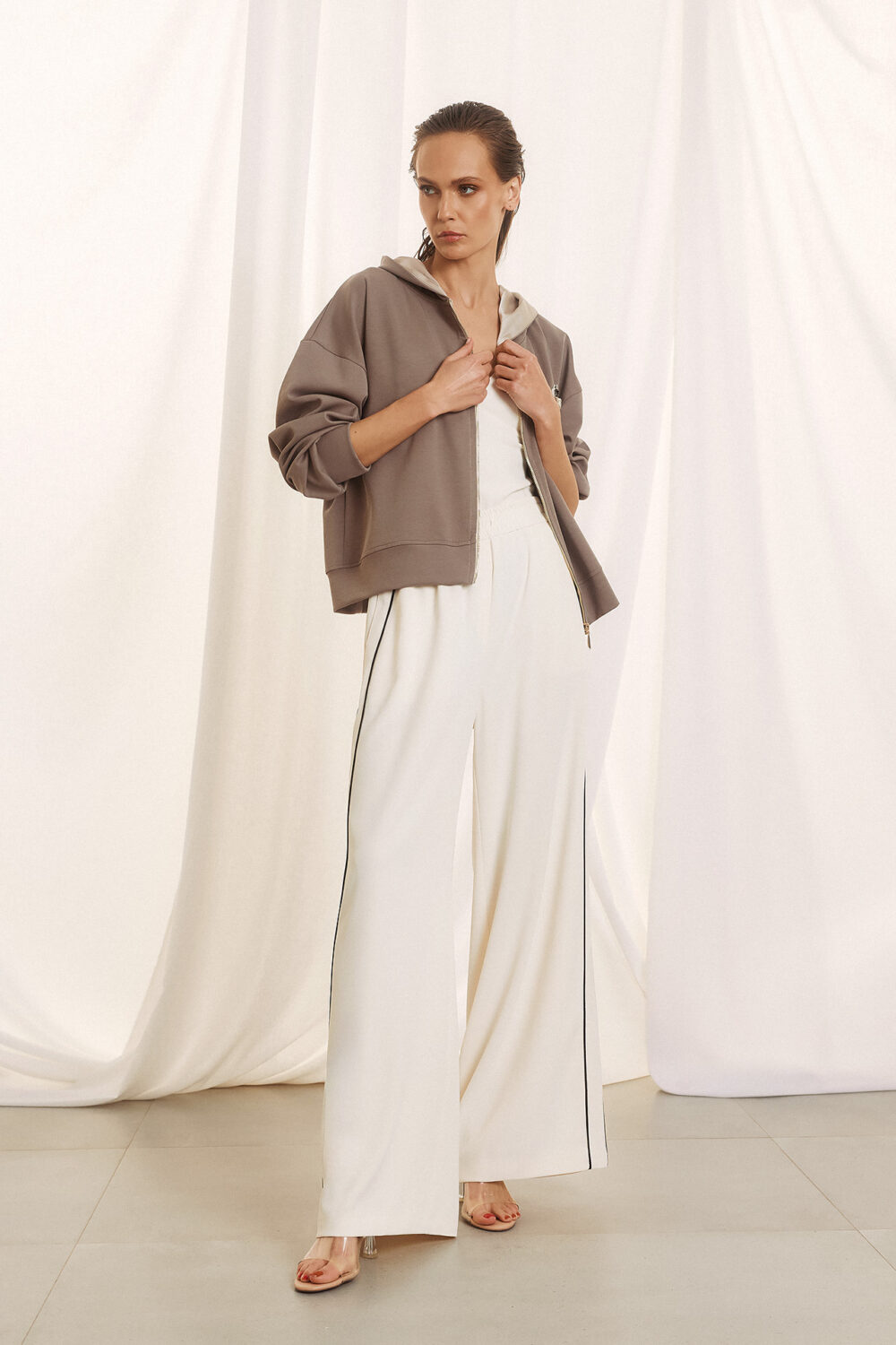 Η άνεση του φούτερ συναντά το ιδιαίτερο design σε μια ζακέτα που θα λατρέψεις. Αυτή η ζακέτα είναι η ιδανική επιλογή για τις καθημερινές σου εμφανίσεις, συνδυάζοντας την απαλή υφή του φούτερ με μια εντυπωσιακή καλλιτεχνική λεπτομέρεια.