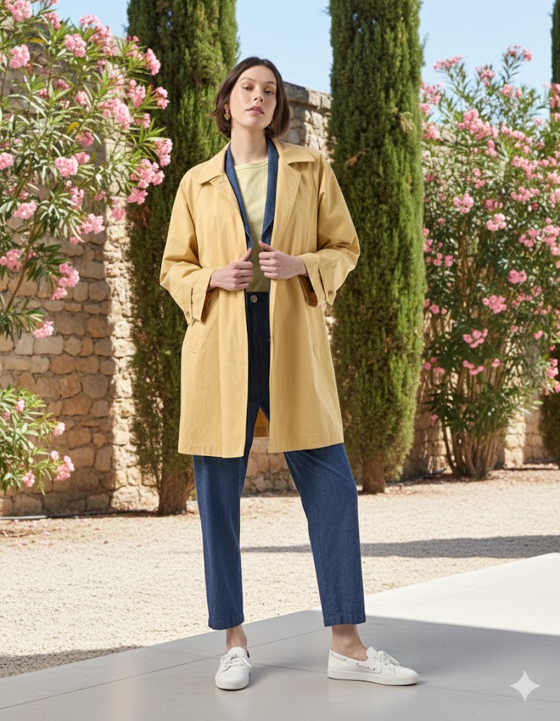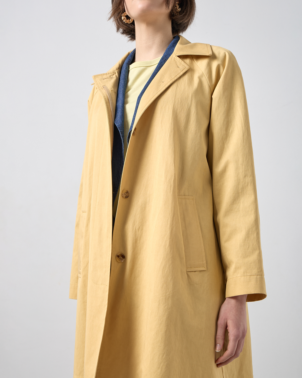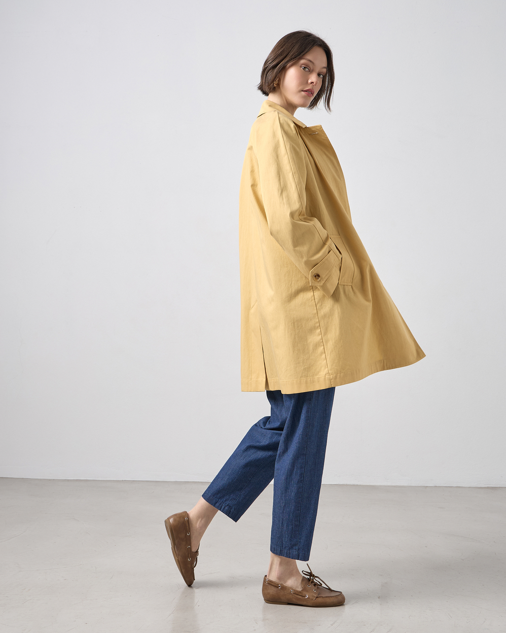 Καπαρντίνα σε ίσια γραμμή με κλασικό γιακά, κλείσιμο μπροστά με κουμπιά, πλαΐνές τσέπες, mid-length, σε άνετη γραμμή