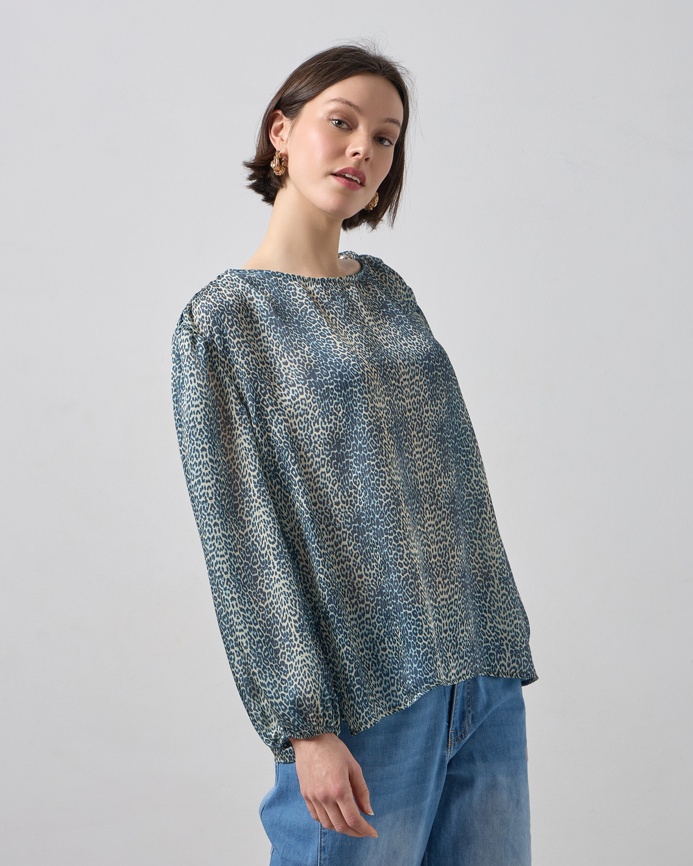 Μπλούζα animal print με στρογγυλή λαιμόκοψη, μακριά μανίκια με διακριτικά ανοίγματα και λάστιχο στο τελείωμα των μανικιών, ανάλαφρο ύφασμα, σε άνετη εφαρμογή