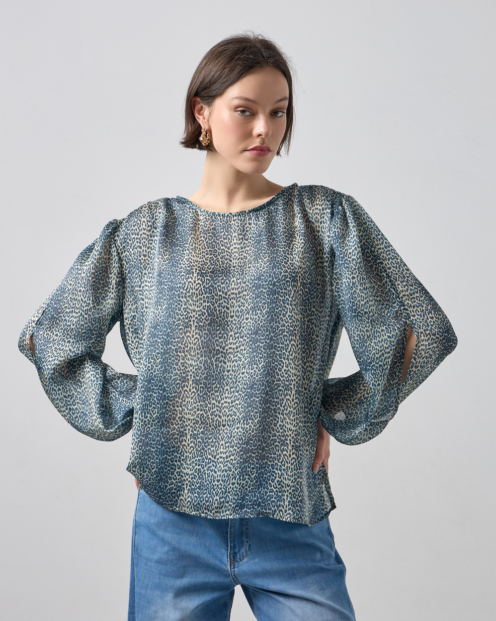 ΜΠΛΟΥΖΑ ANIMAL PRINT ΜΕ ΑΝΟΙΓΜΑ ΣΤΑ ΜΑΝΙΚΙΑ