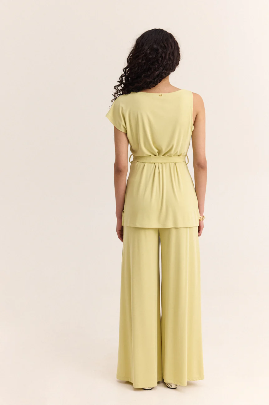 Ασύμμετρη μπλούζα με ζώνη στη μέση.