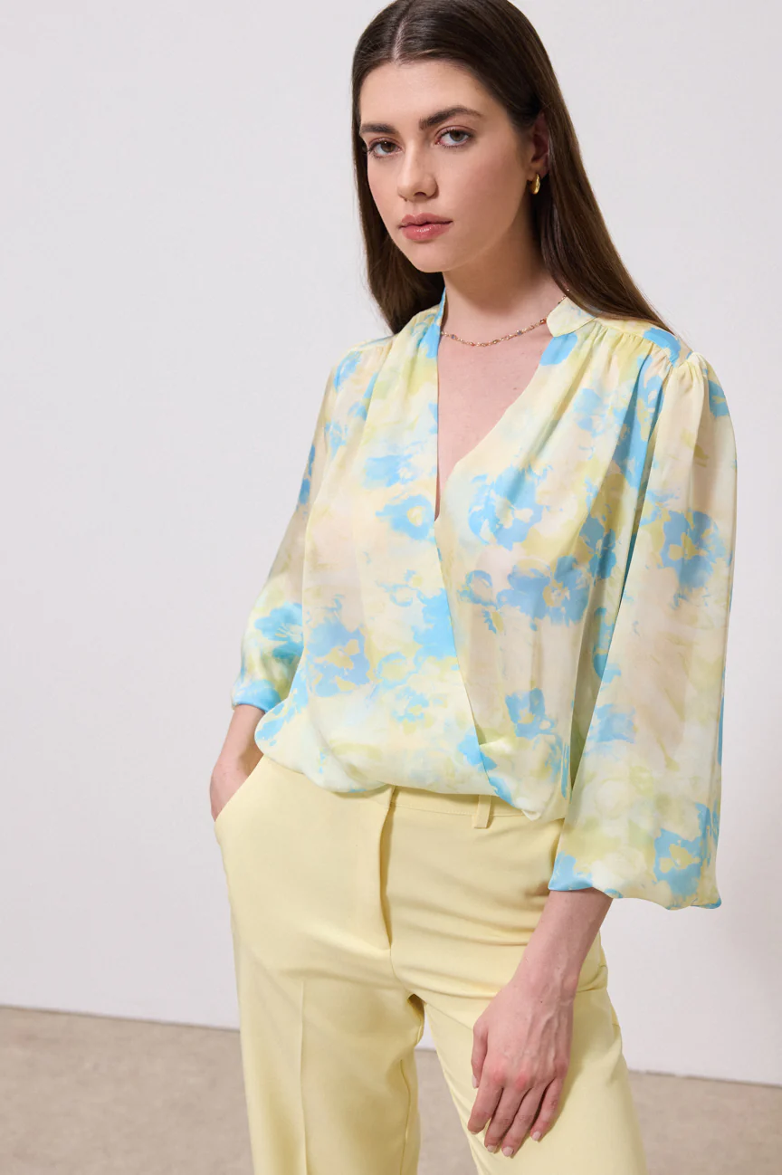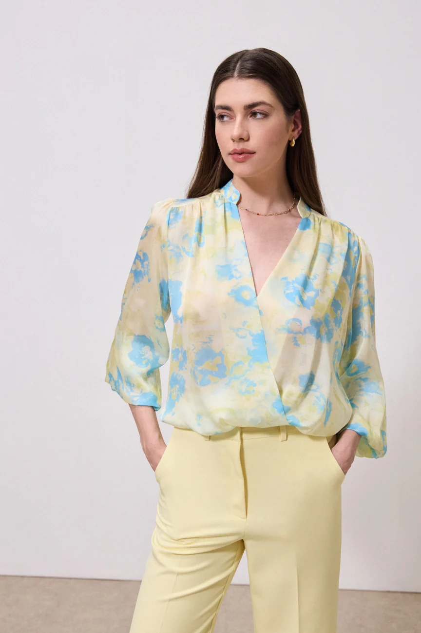 Κρουαζέ μπλούζα, εμπριμέ.Σταθερό ύφασμα.Χαλαρή εφαρμογή με άνετη κίνηση.Μανίκια με λάστιχο στο τελείωμα.
