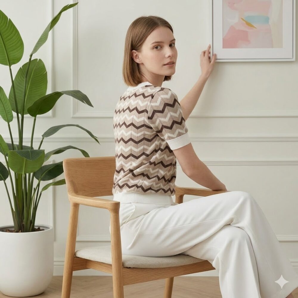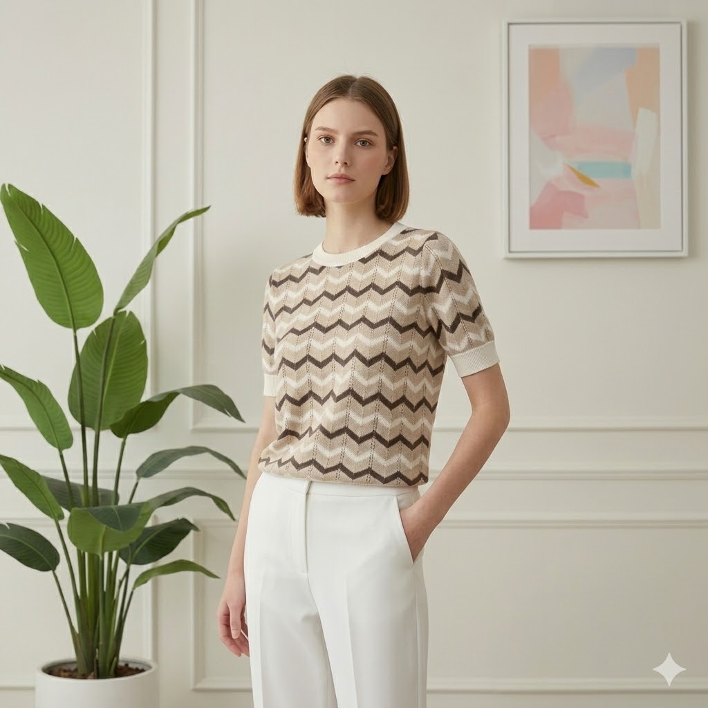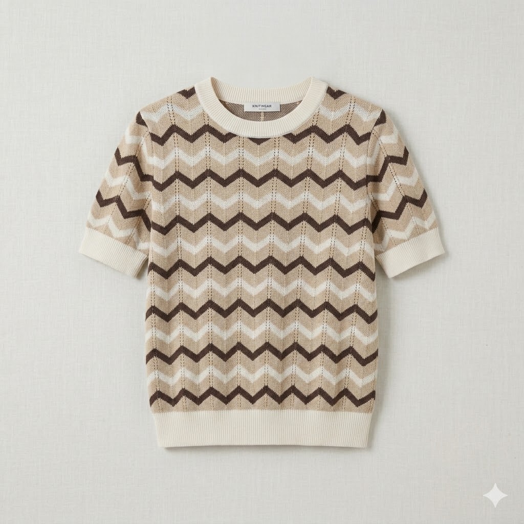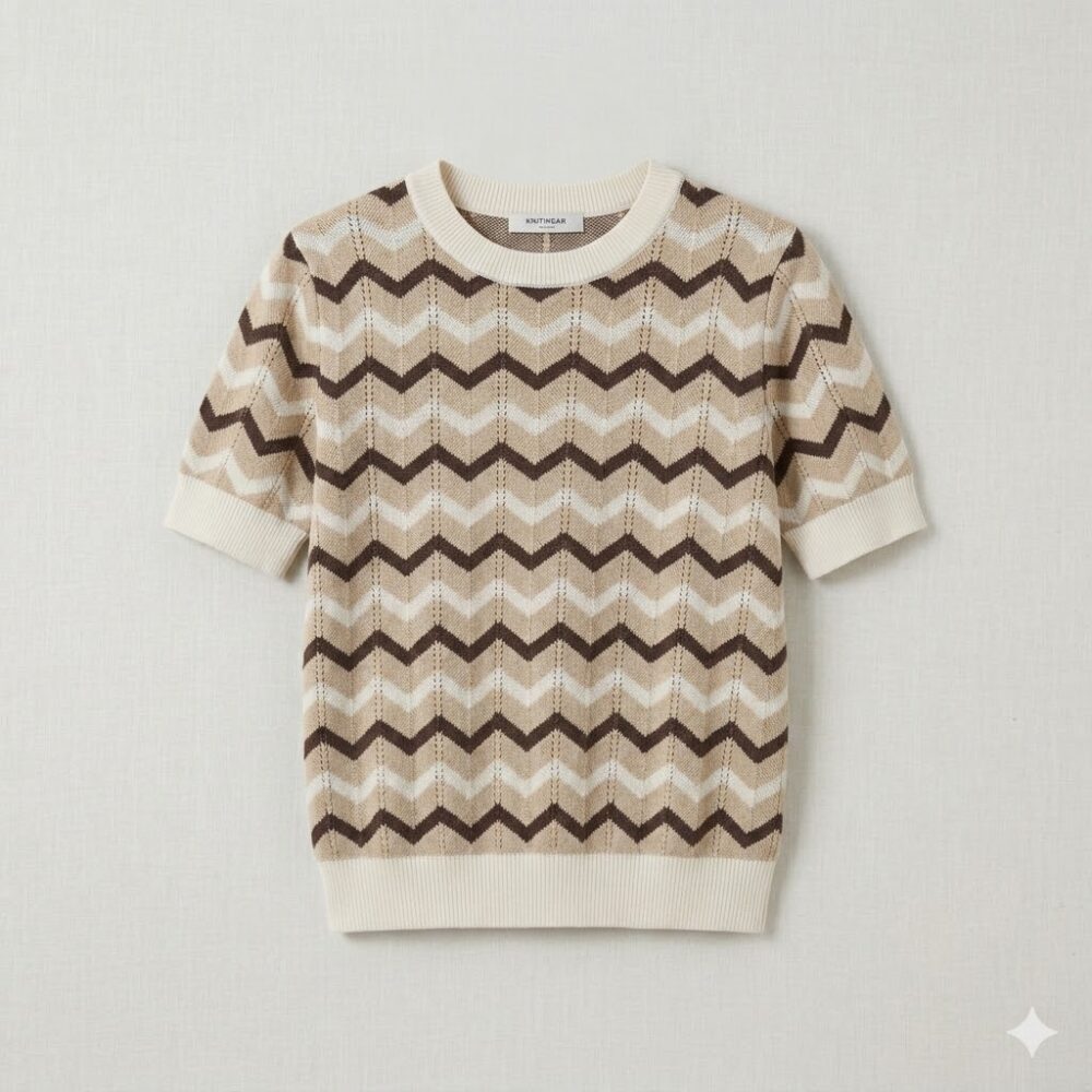 Μπλούζα με κοντό μανίκι από απαλό πλεκτό ύφασμα, με εκλεπτυσμένο ζιγκ-ζαγκ μοτίβο.