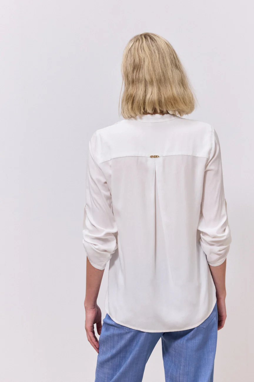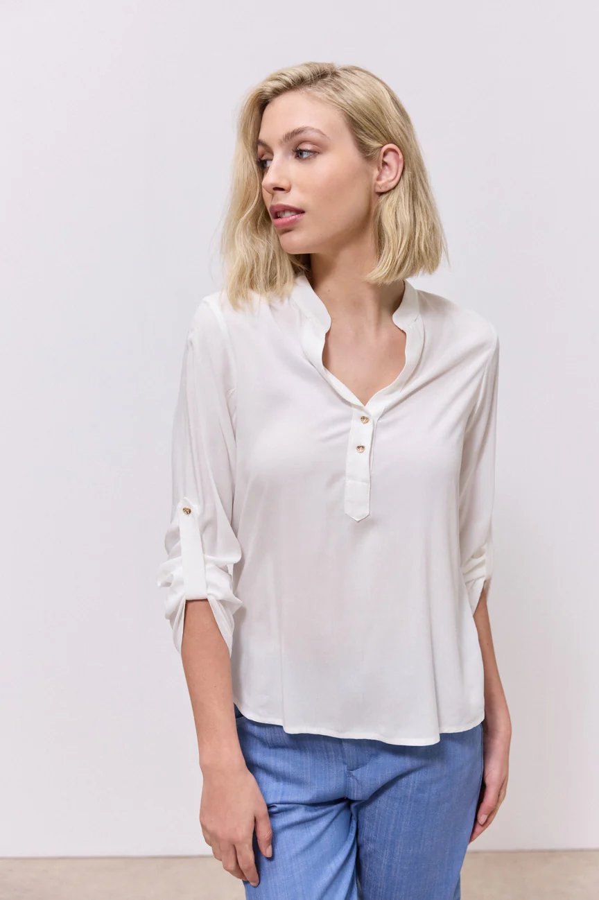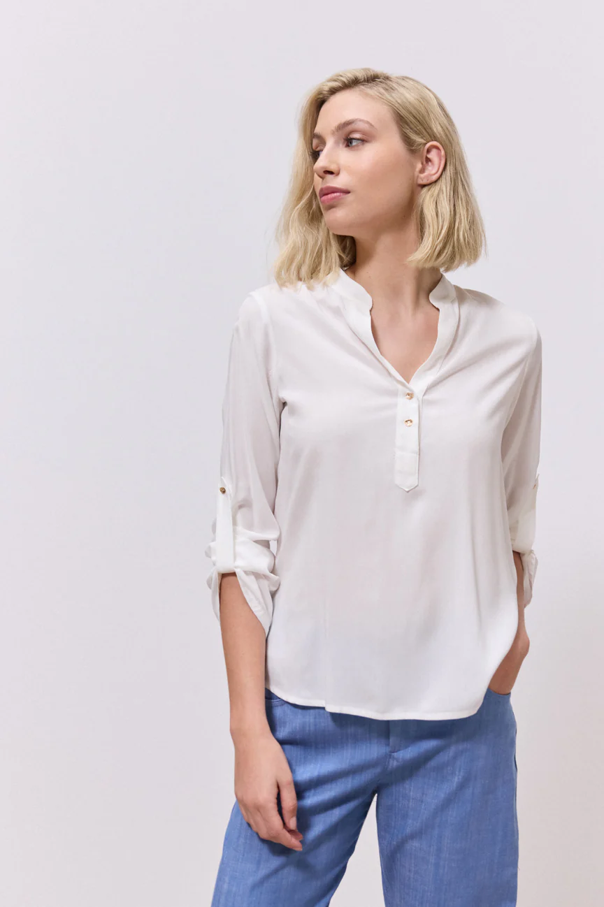 Μπλούζα μακρυμάνικη. Σταθερό ύφασμα. Ίσια γραμμή με άνετη κίνηση.