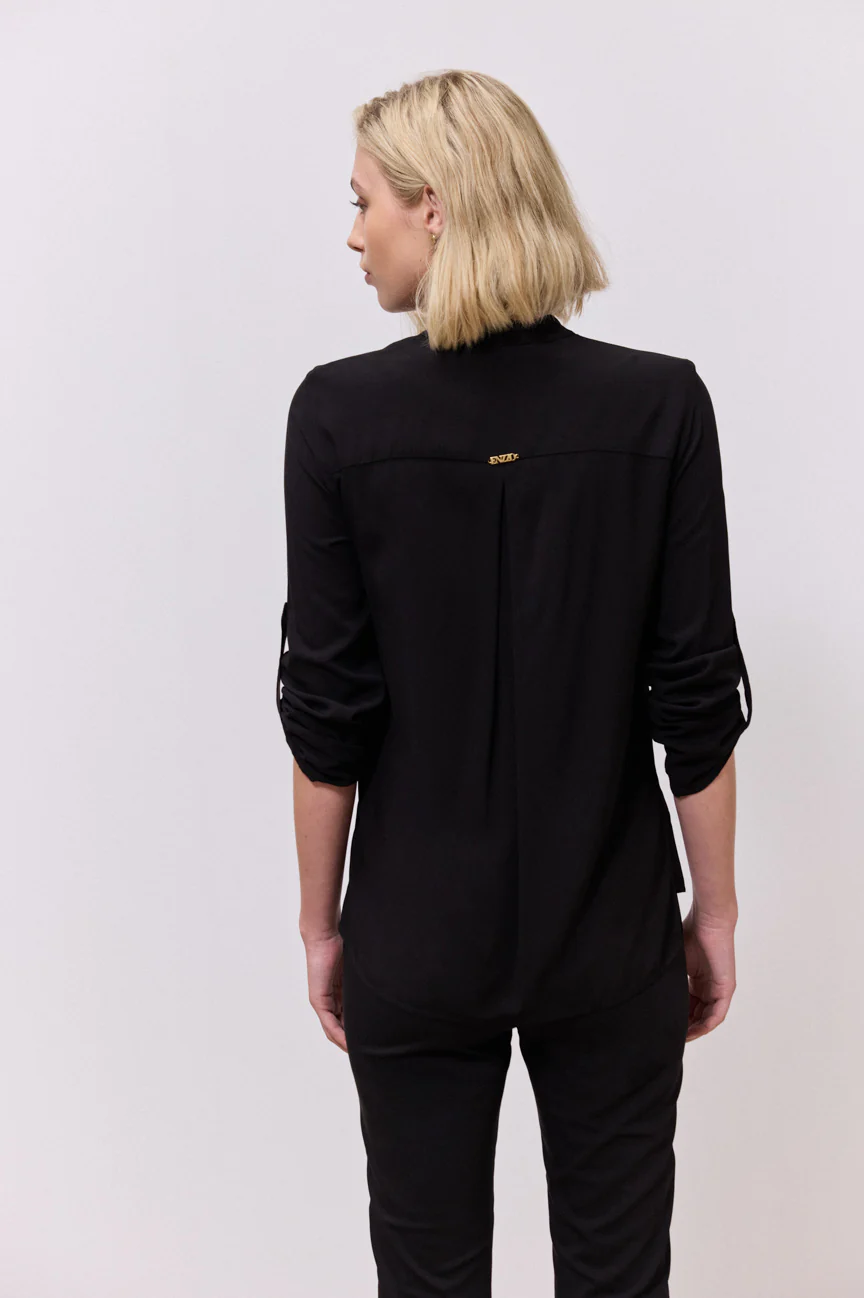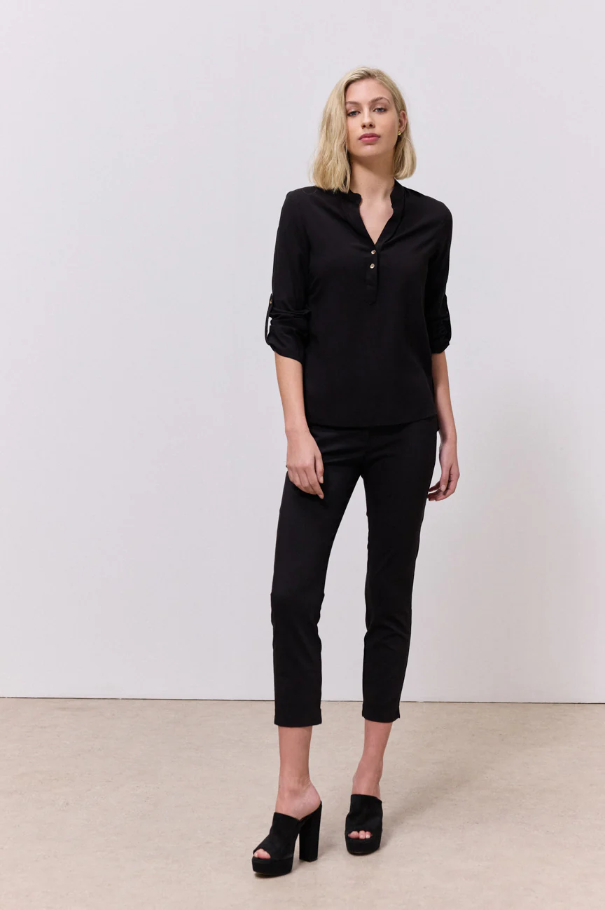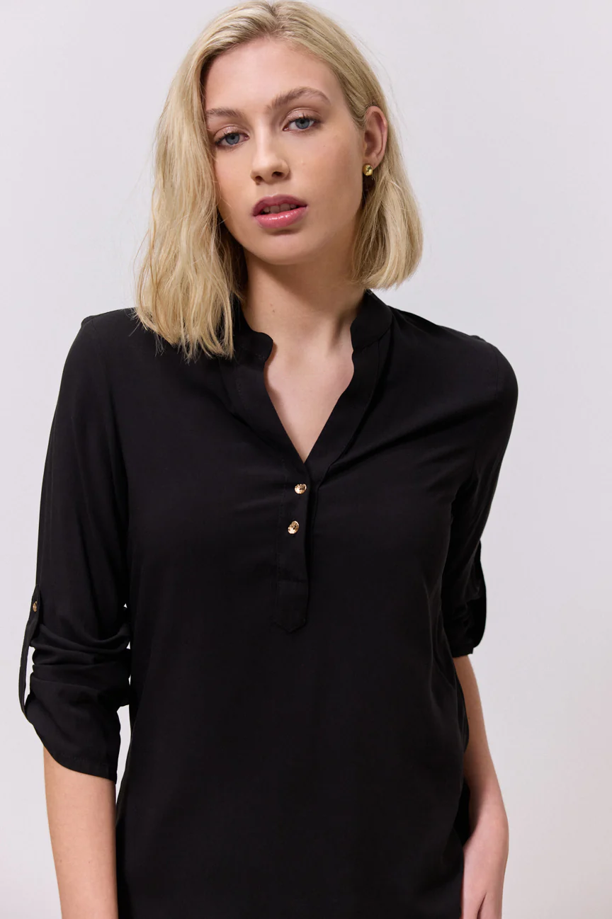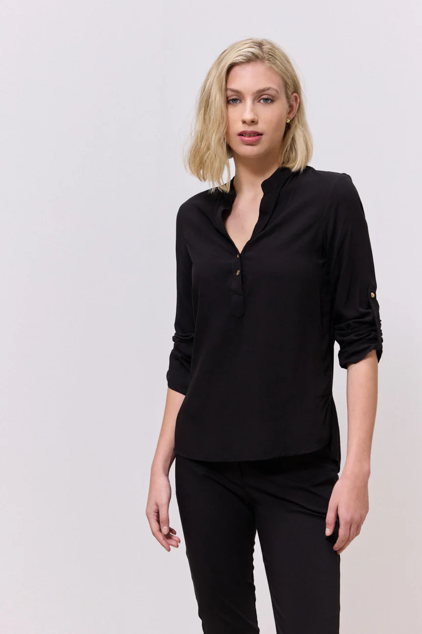 Μπλούζα μακρυμάνικη. Σταθερό ύφασμα. Ίσια γραμμή με άνετη κίνηση.