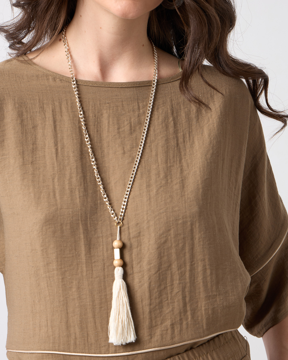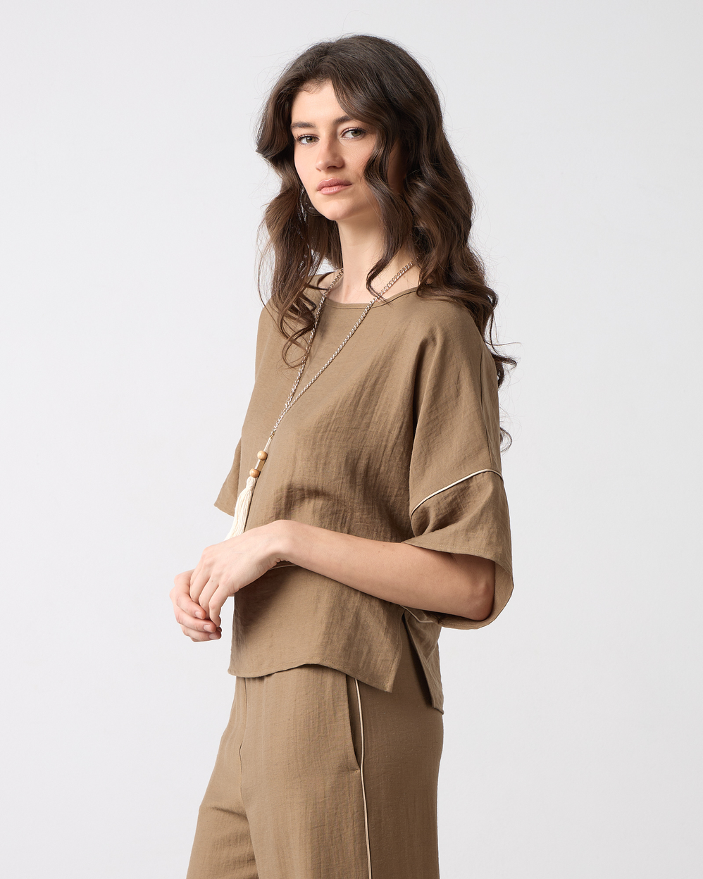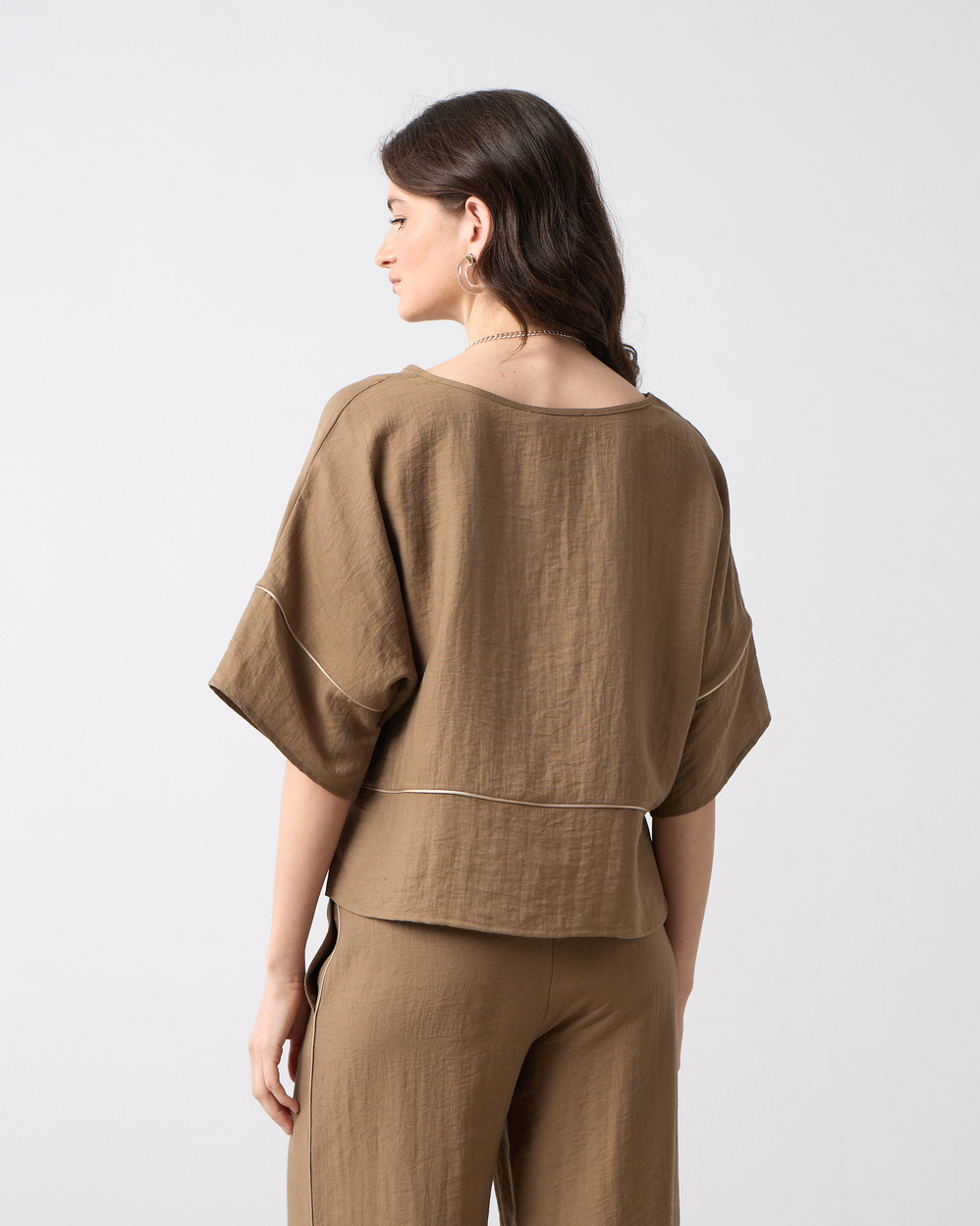 Μπλούζα με λαιμόκοψη χαμόγελο, μανίκι 3/4, διακοσμητική τρέσα σε άνετη εφαρμογή
