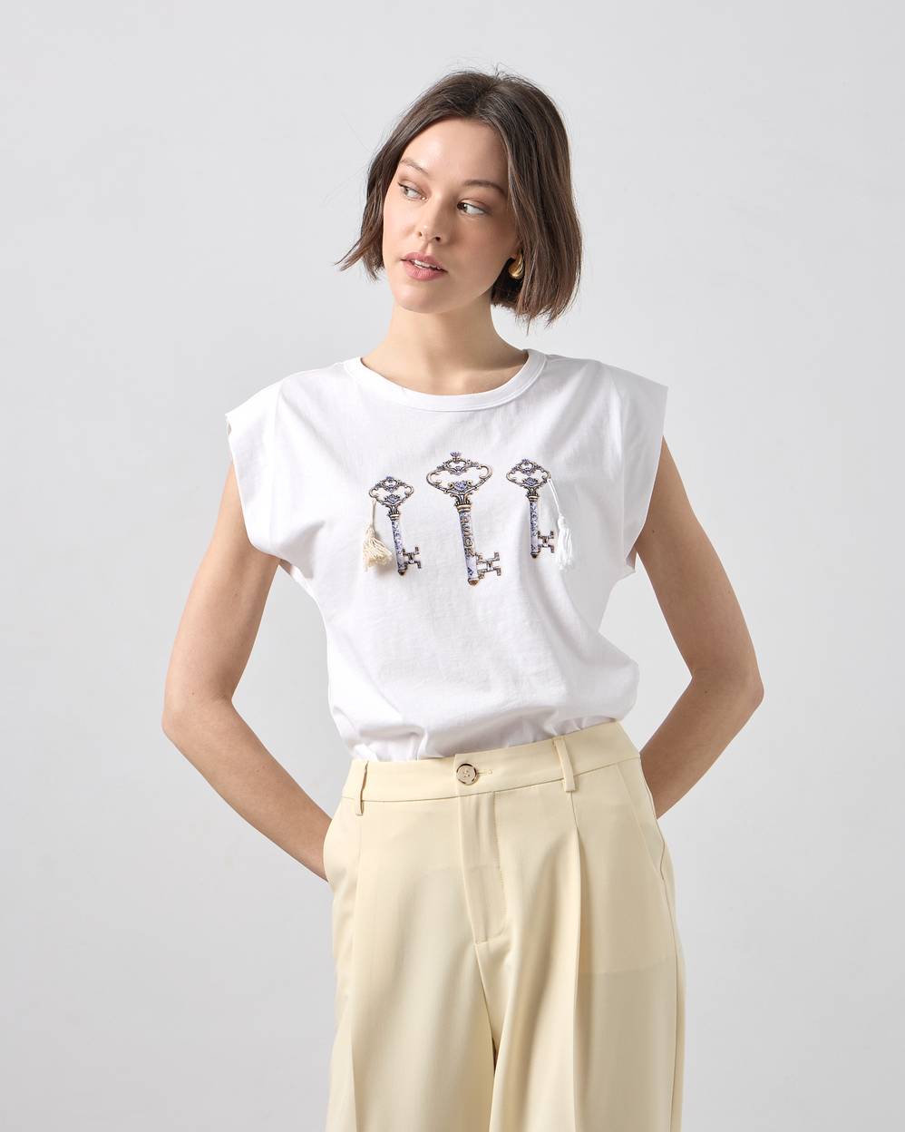 ΜΠΛΟΥΖΑ T-SHIRT ΜΕ ΣΤΑΜΠΑ ΚΛΕΙΔΙΑ