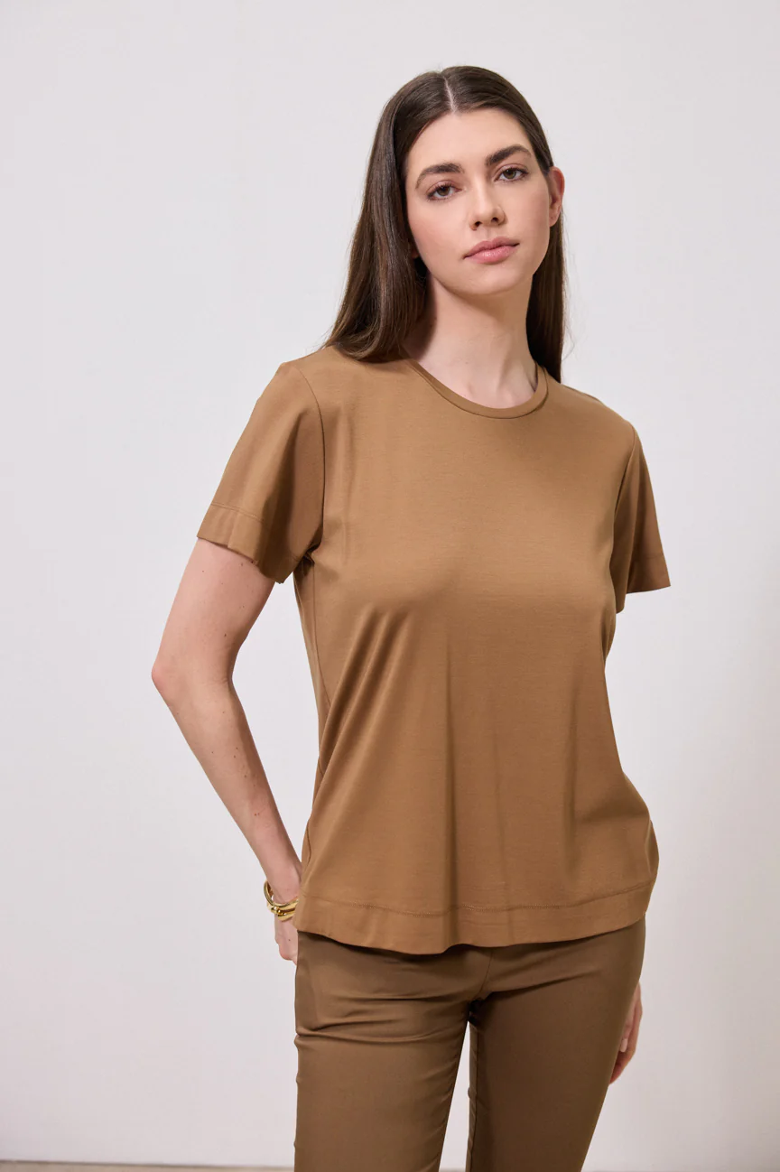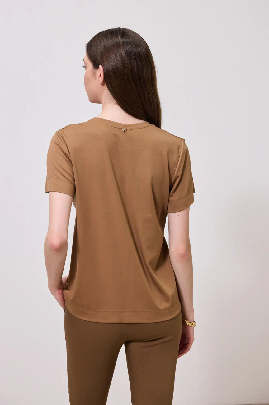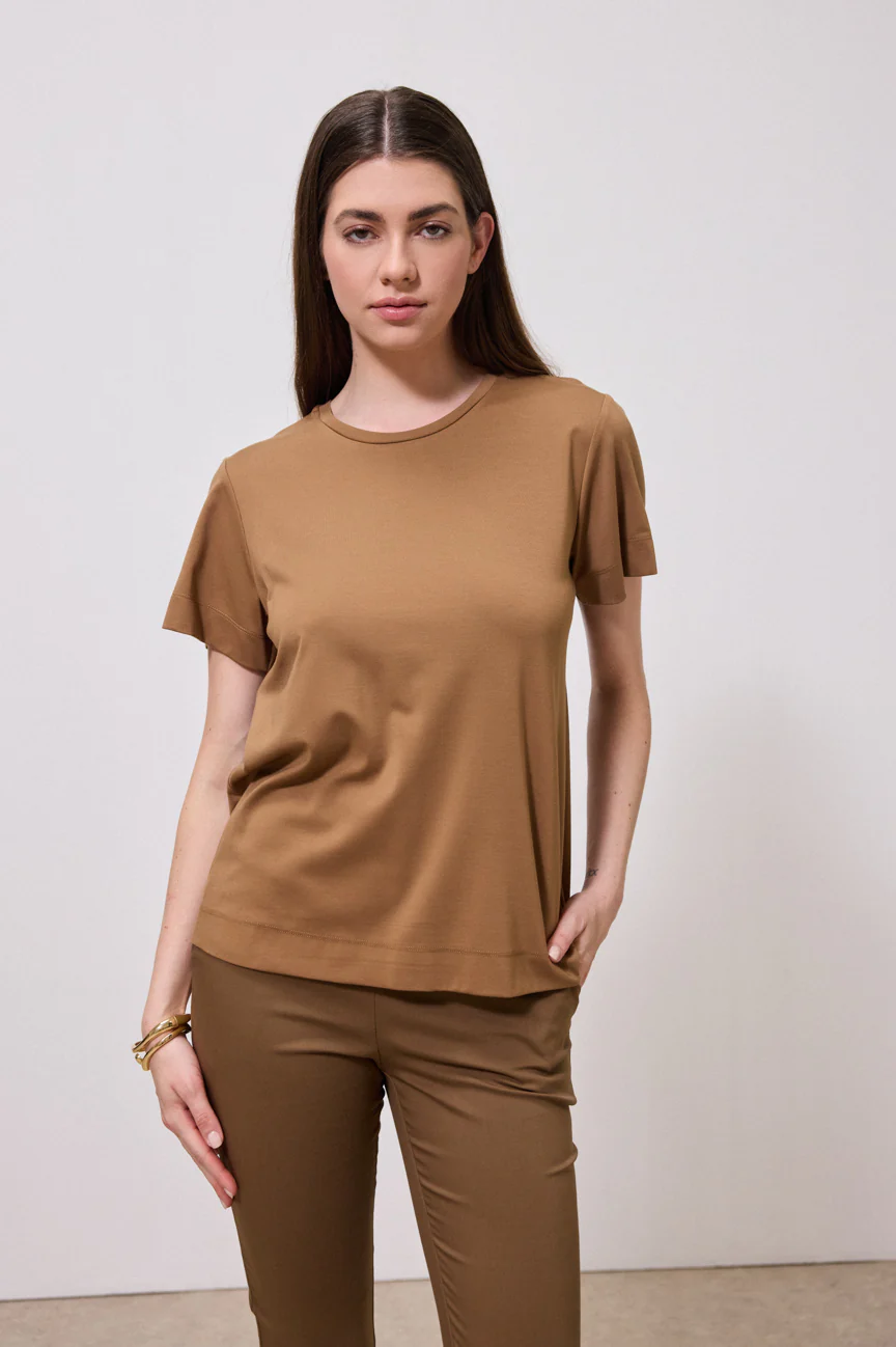 Μπλούζα κοντομάνικη. Ελαστικό ύφασμα. Ίσια γραμμή με άνετη κίνηση.