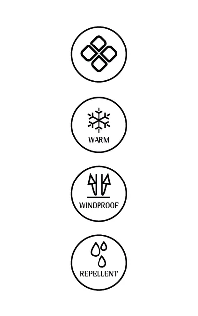Δεύτερο σύμβολο (Χιονονιφάδα – WARM): Υποδεικνύει ότι το ρούχο παρέχει θερμομόνωση και είναι σχεδιασμένο να διατηρεί τη θερμοκρασία του σώματος σε χαμηλές συνθήκες.