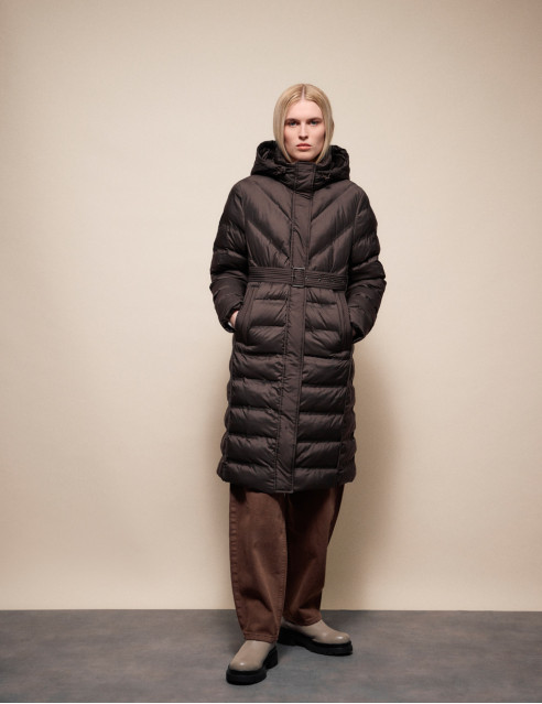 ΜΠΟΥΦΑΝ ΜΑΚΡΥ ΜΕ ΕΝΣΩΜΑΤΩΜΕΝΗ ΚΟΥΚΟΥΛΑ, ΚΛΕΙΣΙΜΟ ΜΕ ΚΡΥΦΟ ΦΕΡΜΟΥΑΡ ΚΑΙ ΖΩΝΗ.