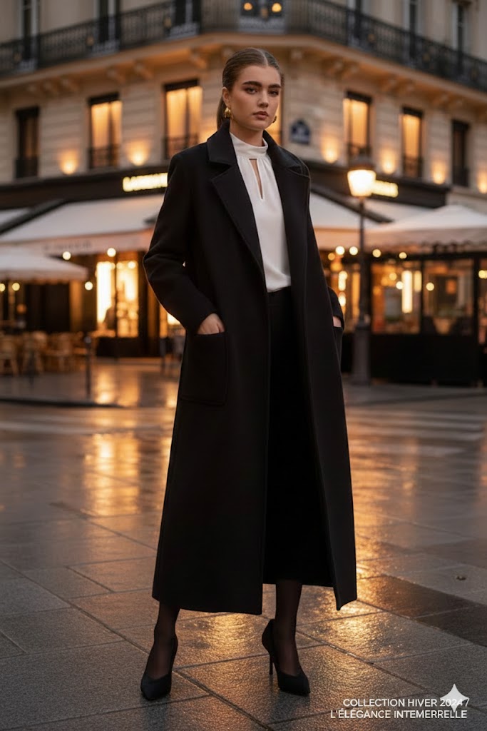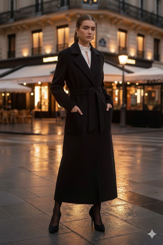 Η επιτομή της διαχρονικής κομψότητας. Αυτό το μαύρο maxi παλτό αποτελεί το απόλυτο “must-have” κομμάτι για κάθε γυναικεία γκαρνταρόμπα,προσφέροντας έναν αέρα επιβλητικής πολυτέλειας που δεν βγαίνει ποτέ από τη μόδα.
