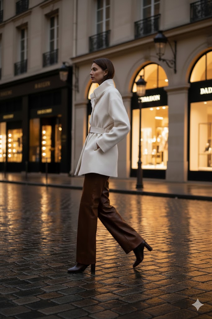 Συνδυάστε το με δερμάτινο παντελόνι σε ταμπά τόνους για ένα statement look που ισορροπεί τέλεια ανάμεσα στο μοντέρνο και το κλασικό.