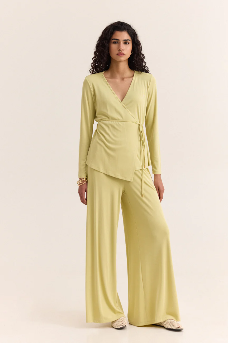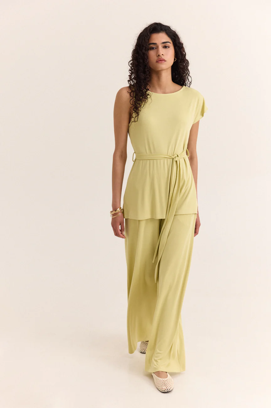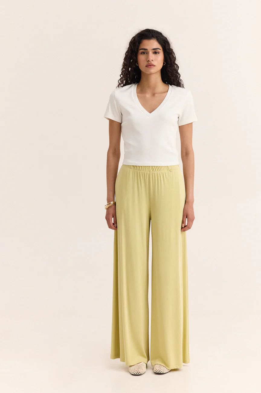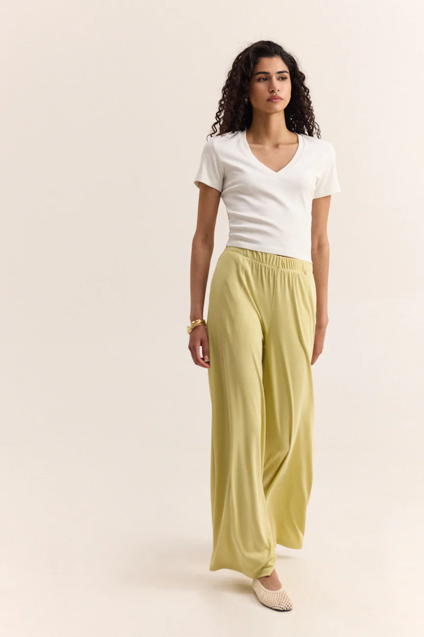 Παντελόνι σε φαρδία γραμμή.Ελαστικό ριπ ύφασμα, βισκόζη.