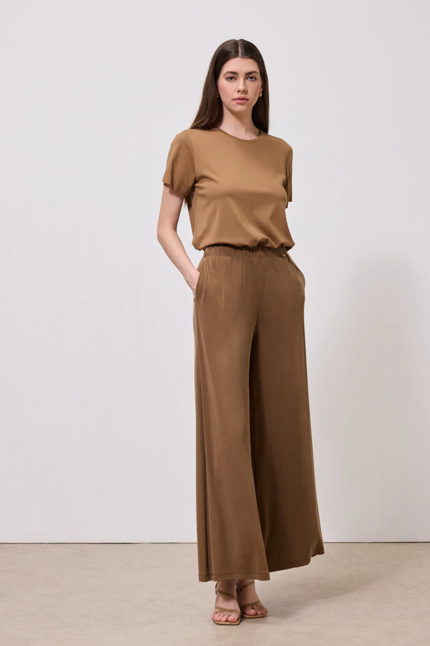 Παντελόνι σε φαρδία γραμμή.Ελαστικό ριπ ύφασμα, βισκόζη.