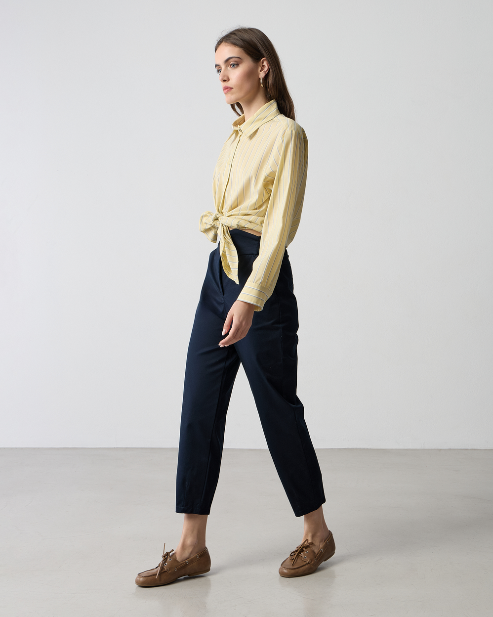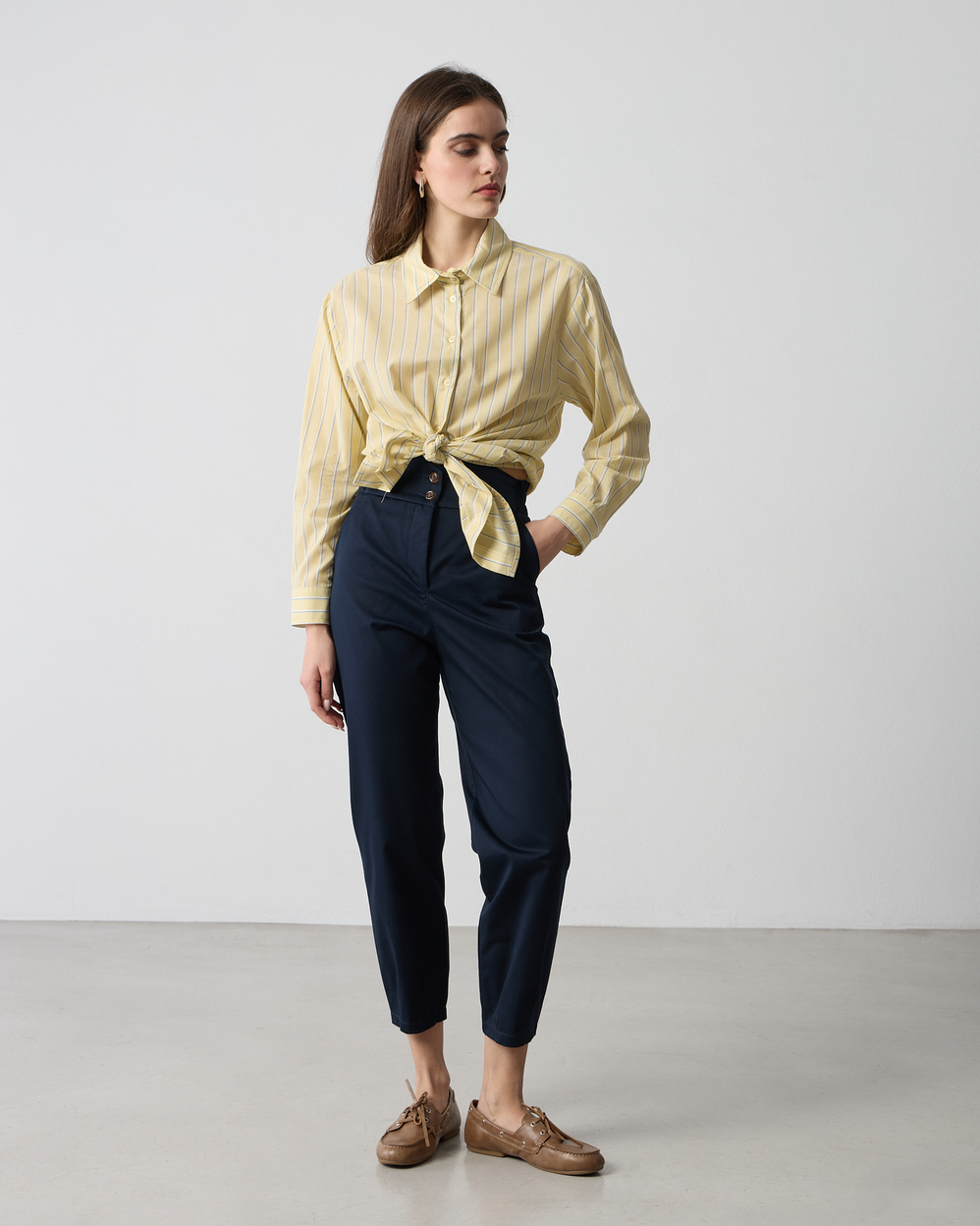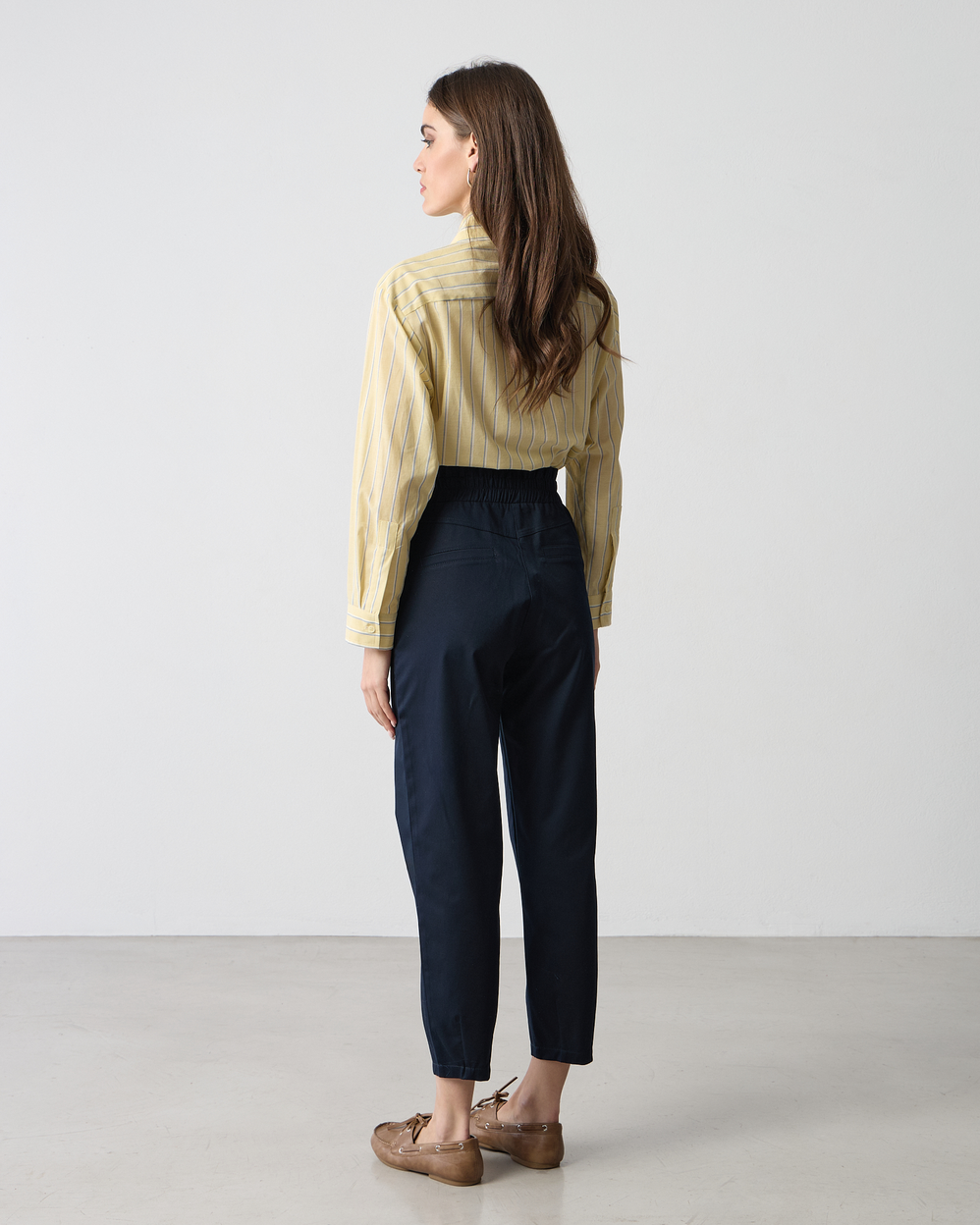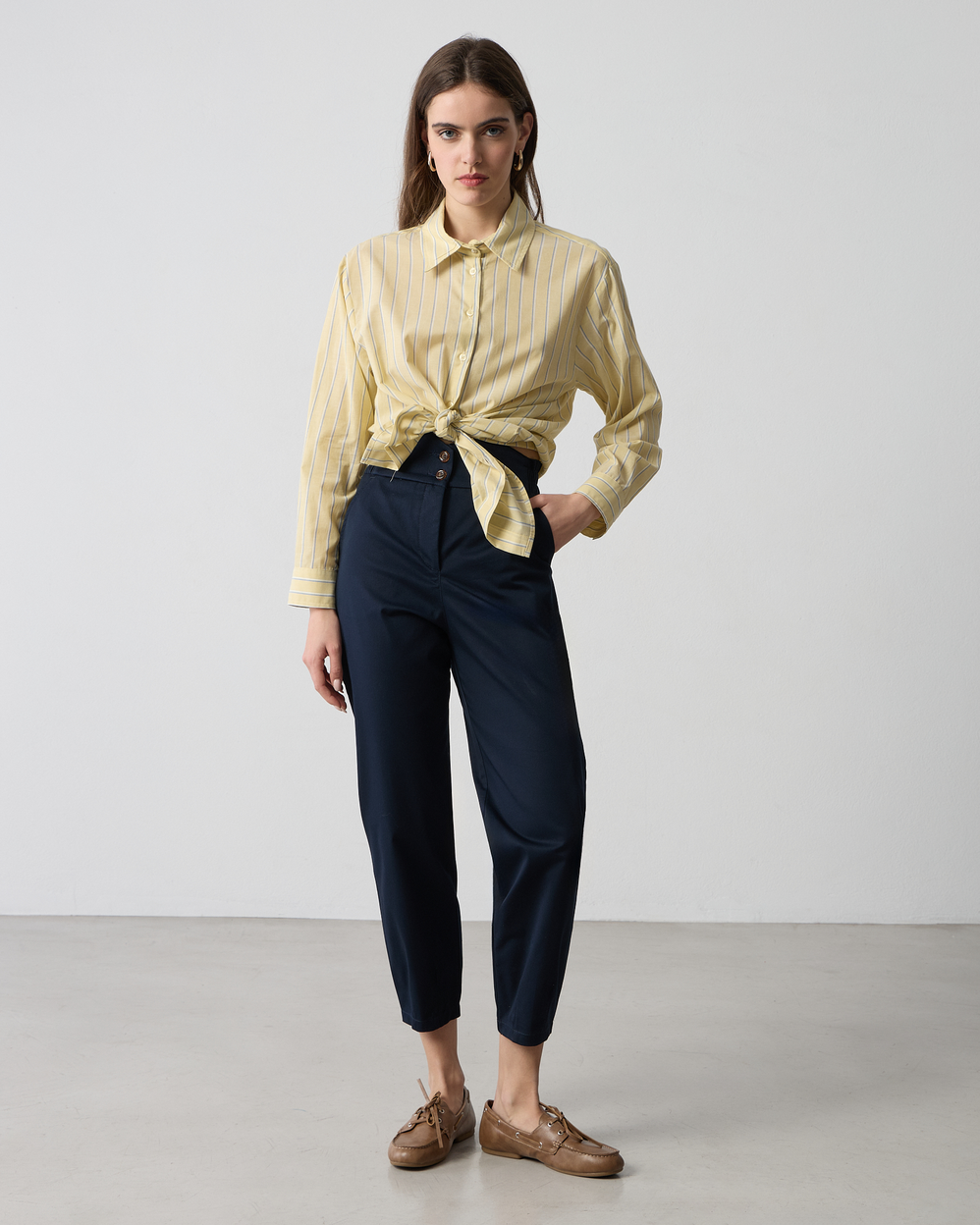 Παντελόνι ψηλόμεσο με λάστιχο στη μέση, κλείσιμο με κουμπιά μπροστά και φερμουάρ, σε cotton ύφασμα, σε κανονική γραμμή