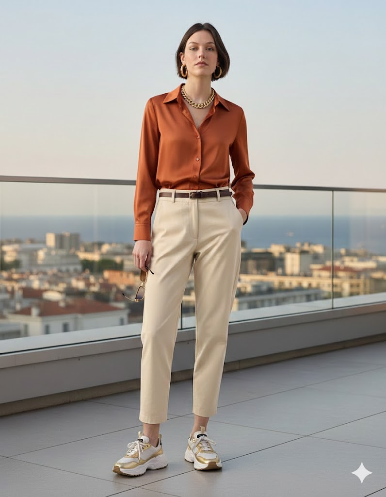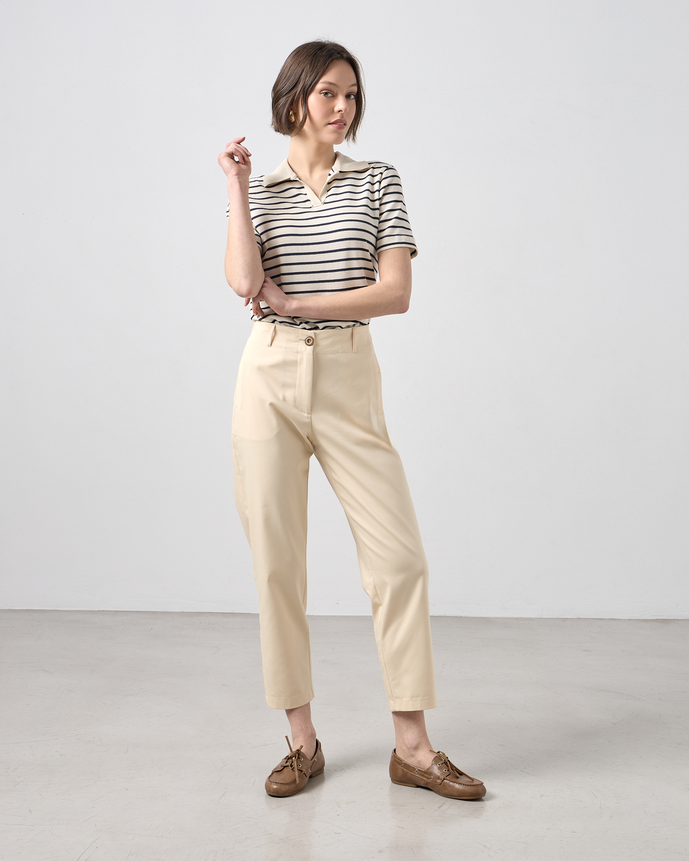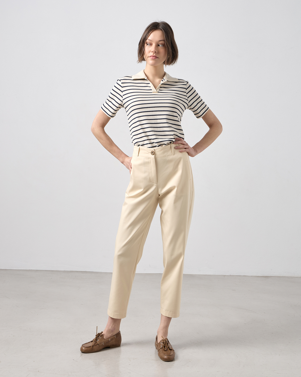 Παντελόνι με λάστιχο στη μέση, κλείσιμο με κουμπί και φερμουάρ, τσέπες μπροστά και εξωτερικές patch τσέπες στο πίσω μέρος, υφή καπαρντίνα.