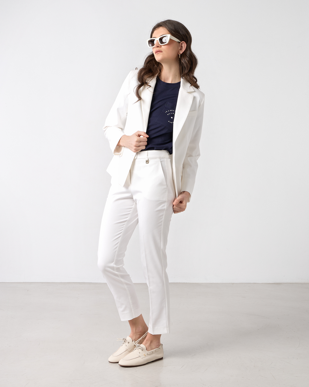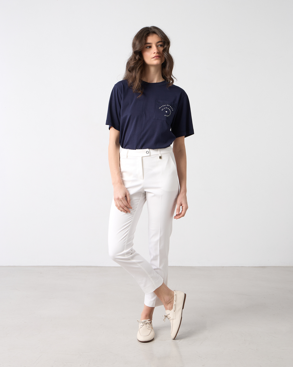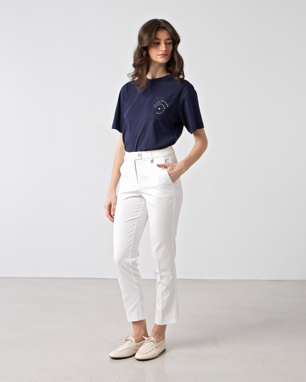 Παντελόνι cigarette σε υφή καπαρντίνα, κλείσιμο μπροστά με φερμουάρ και κουμπί, με πλαΐνές τσέπες, σε κανονική γραμμή