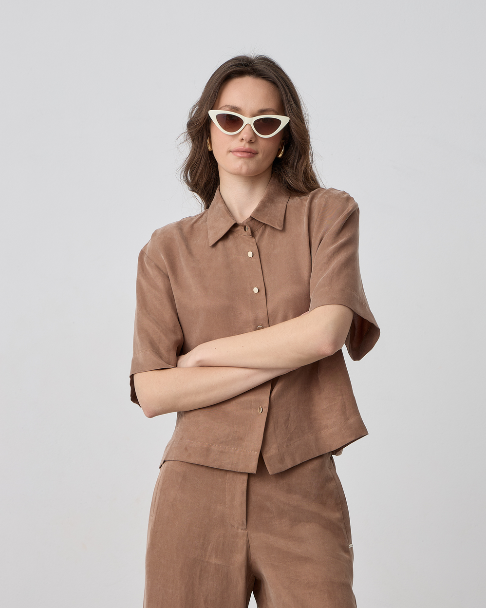 Πουκάμισο κοντομάνικο με γιακά, κλείσιμο με κουμπιά, ύφασμα lyocell σε άνετη γραμμή
