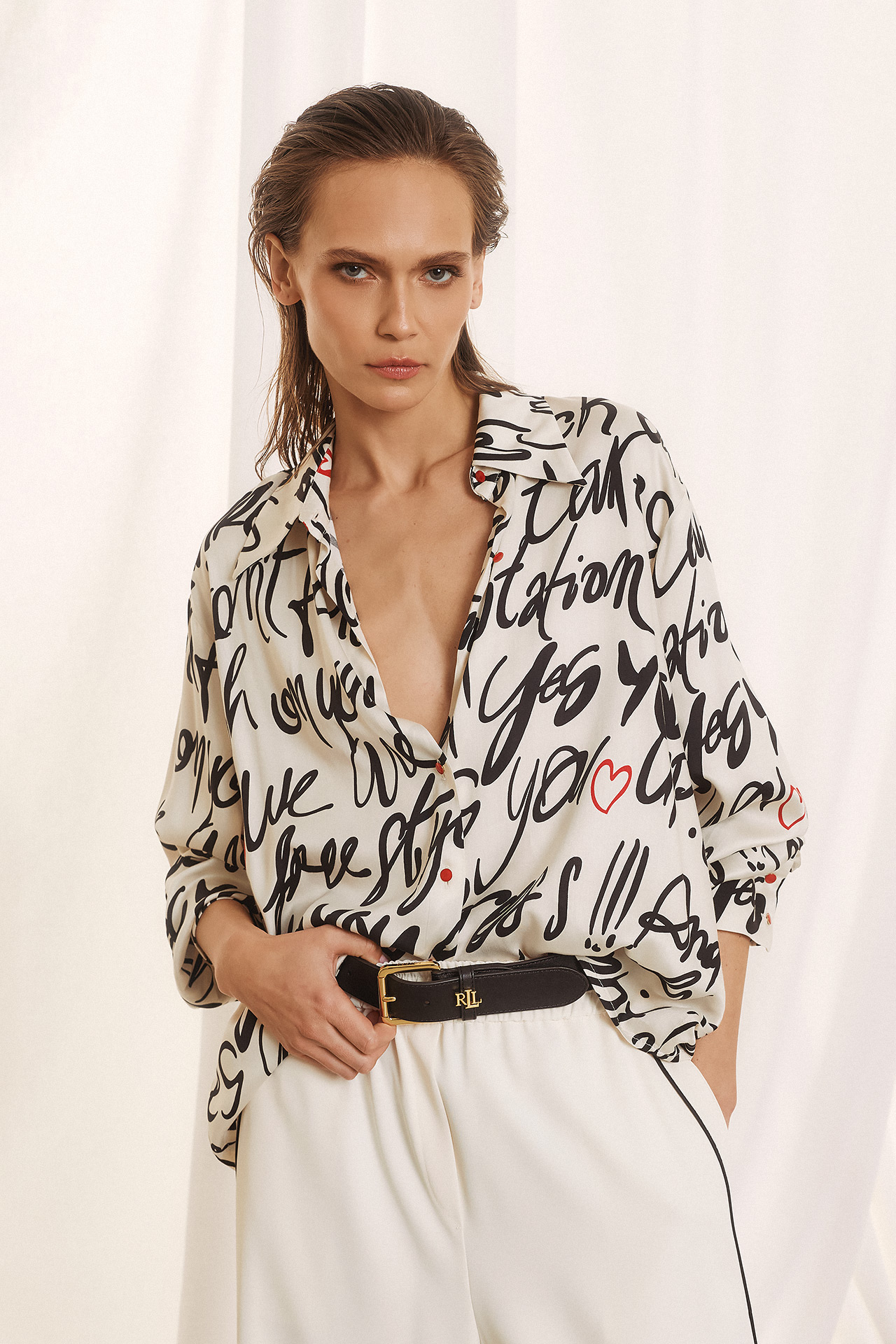 Αναδείξτε το σοφιστικέ στυλ σας με αυτό το εξαιρετικό, μακρυμάνικο πουκάμισο. Σε κομψή εκρού απόχρωση, διακοσμείται από ένα περίπλοκο, επαναλαμβανόμενο γεωμετρικό μοτίβο σε μαύρο χρώμα. Το σχέδιο, με τις καθαρές γραμμές και τις λεπτομέρειες που θυμίζουν μάνταλα, προσφέρει μια σύγχρονη, καλλιτεχνική πινελιά σε μια κλασική σιλουέτα.