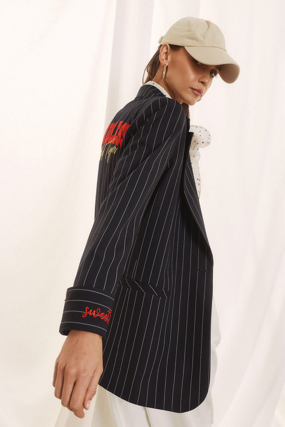 Το νέο μας ριγέ γυναικείο σακάκι ήρθε για να κλέψει τις εντυπώσεις.