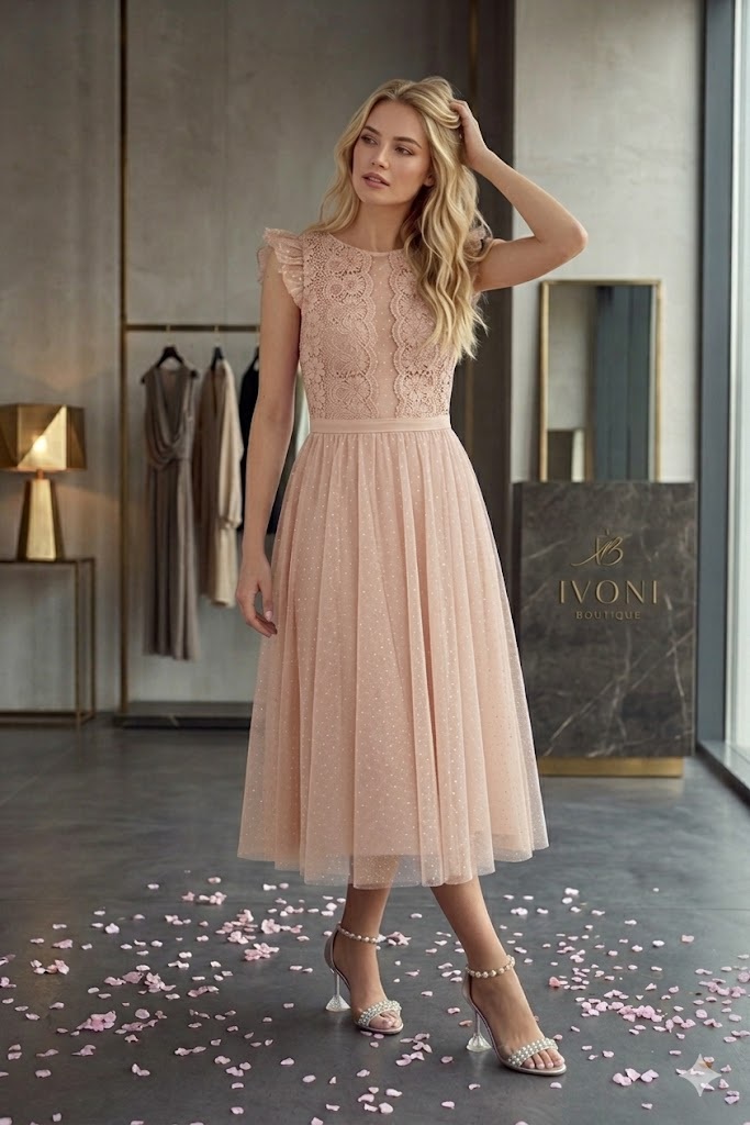 Αυτό το midi φόρεμα είναι σχεδιασμένο για τις πιο ξεχωριστές σας στιγμές, από επίσημες δεξιώσεις μέχρι γάμους και βαφτίσεις.